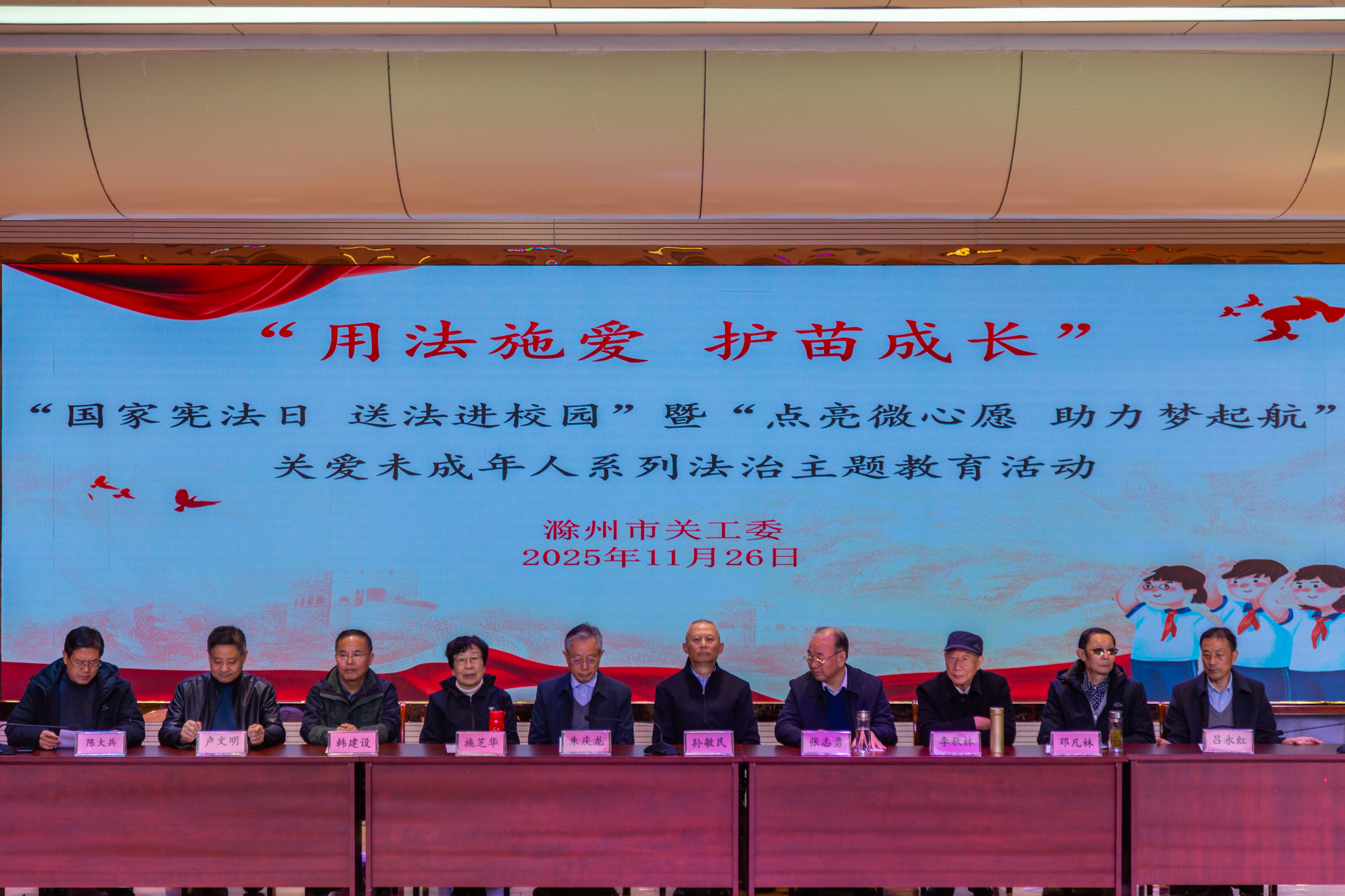 11月26日,滁州市关工委联合市民政局关工委、市未保中心到南谯区湖心路小学开展“国家宪法日·送法进校园”暨“点亮微心愿·助力梦起航”关爱未成年人系列法治主题教育活动,邀请市检察院检察官以案释法,举办《未成年人网络保护条例》讲座、开展法律知识有奖竞答互动等,积极开展“送法进校园”普法教育系列活动。
