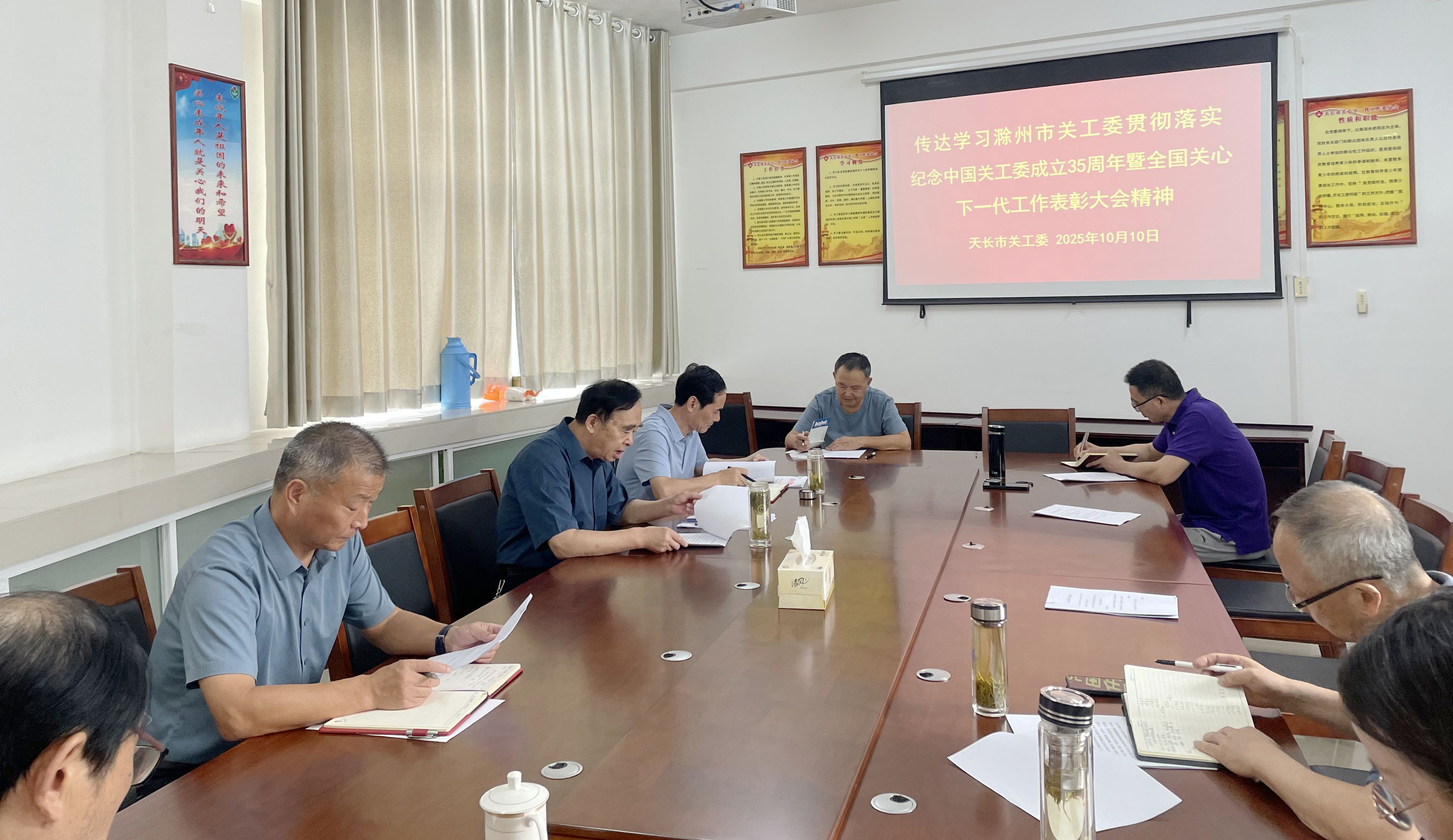 10月10日,天长市关工委召开主任会议,传达学习滁州市关工委关于贯彻落实纪念中国关心下一代工作委员会成立35周年暨全国关心下一代工作表彰大会精神的专题会议精神,并就贯彻落实会议精神进行研究部署。市关工委主任仲文耀,常务副主任舒畅,市委老干部局局长、市关工委副主任王友仁,副主任吴祥贵、许松林,市委老干部局副局长薛才祥及市关工委办公室人员参加会议。